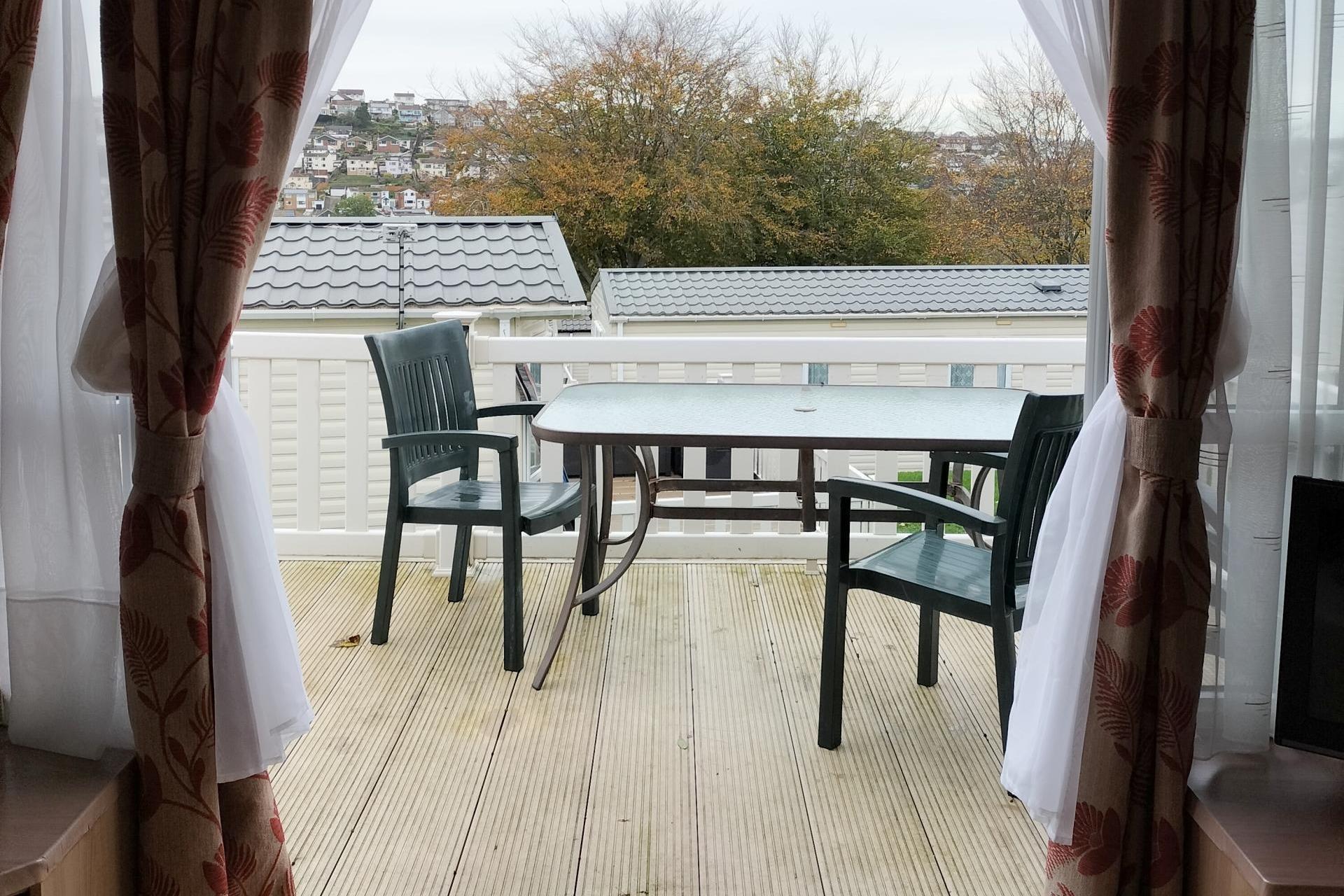 Our accommodation is situated in one of Torbay`s leading parks. We offer you a comfortable 2 bedroom with double pull out sofa bed in living area, main bedroom has a ensuite toilet, the is a full wrap-around decking for outside entertainment with a Seaview. There is convenient parking nearby.